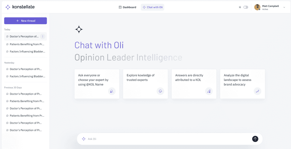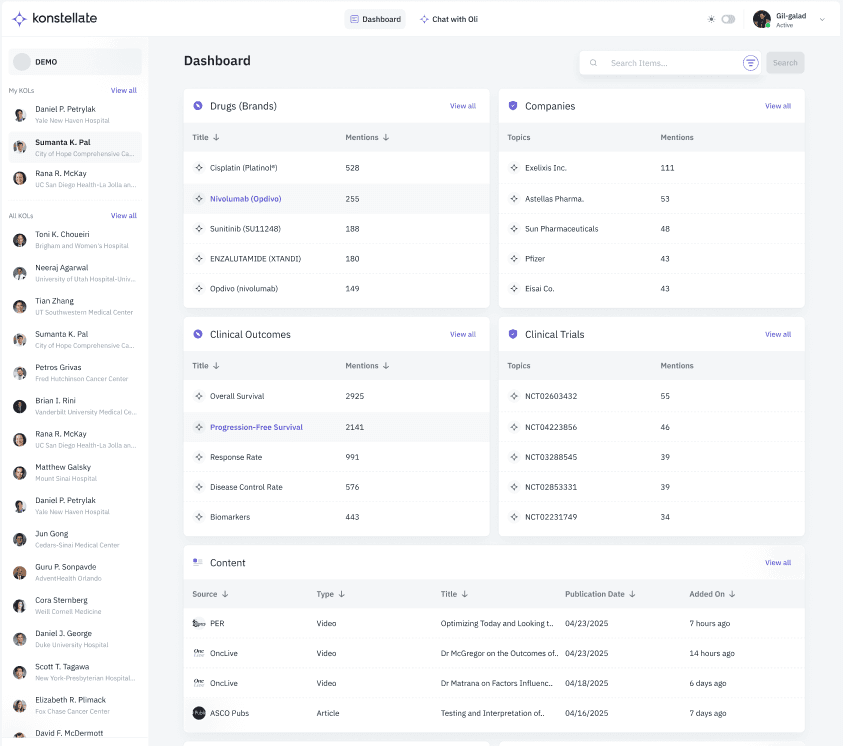 Konstellate leverages large language models trained on disease-specific KOL data sets and fine-tuned by healthcare experts, delivering unparalleled insights for smarter decision-making.