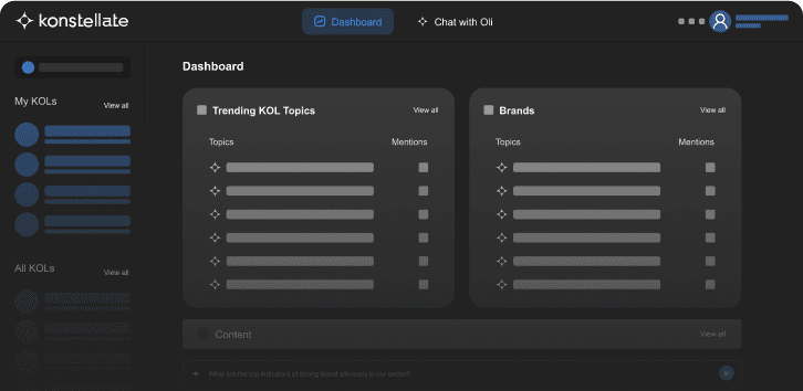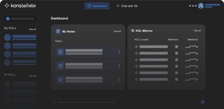 Thought Leader Engagement teams can use Konstellate’s OLI to gather insights from various data sources, revealing market trends, customer needs, and competitor strategies.